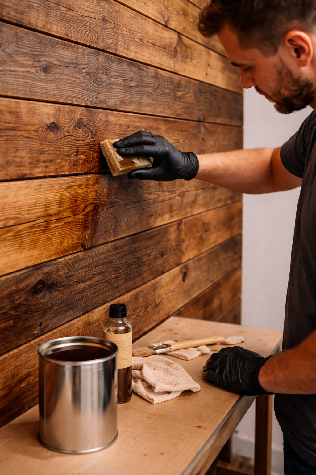 Zabezpieczenie drewnianych desek rustykalnych zależy od miejsca montażu i oczekiwanego efektu wizualnego.
