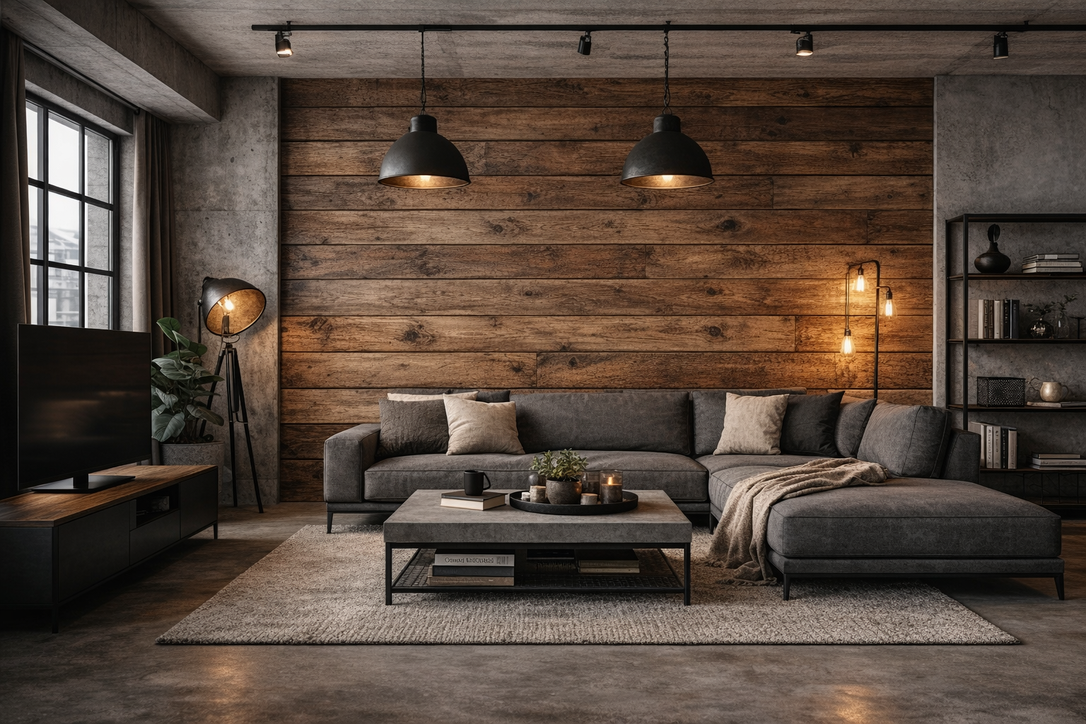 - Styl industrialny – ociepla surowość betonu i stali.