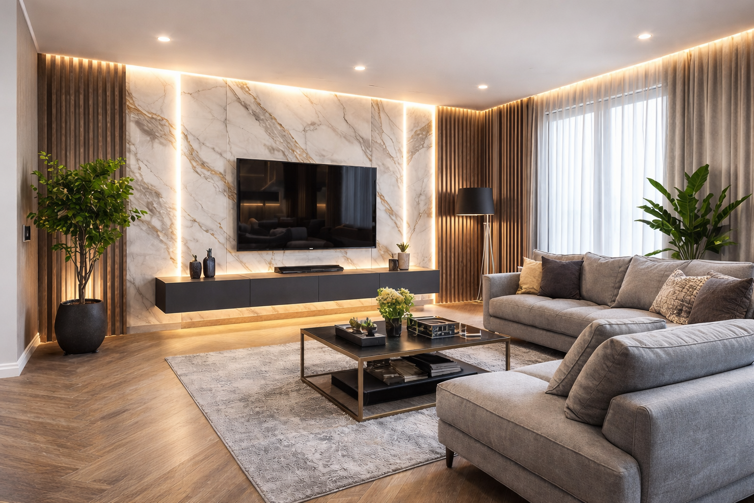 Płyty ścienne WPC do salonu – nowoczesna ściana RTV