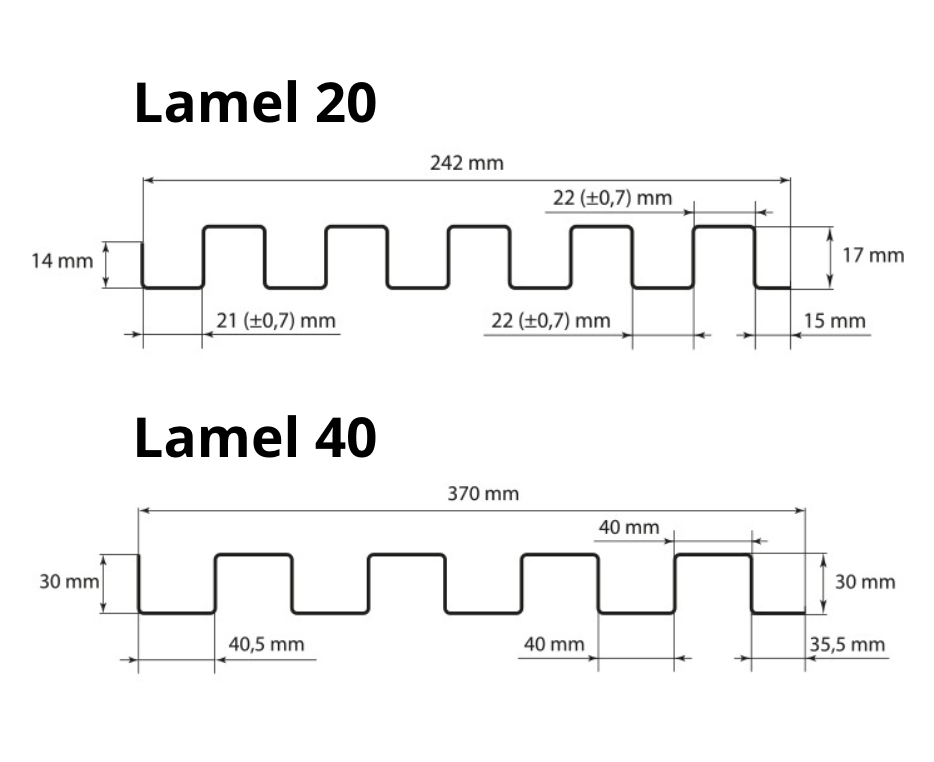 LAMEL20 oraz LAMEL40, różniące się wymiarami i masywnością konstrukcji.