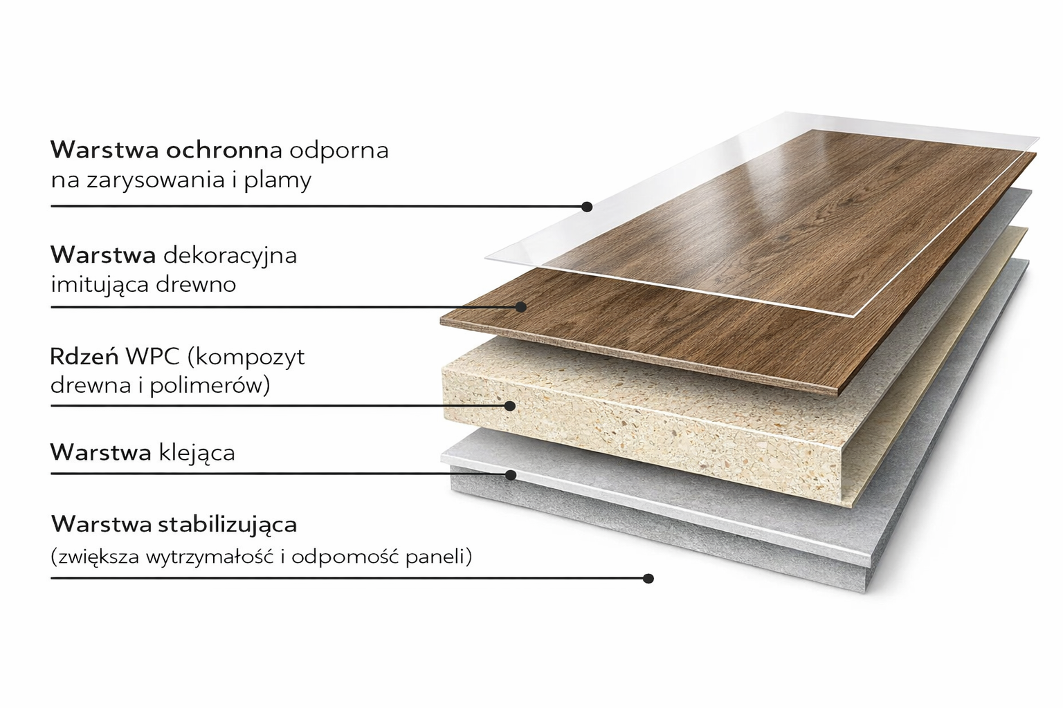 Konstrukcja płyt WPC (Wood-Plastic Composite) opiera się na połączeniu naturalnych włókien drzewnych z tworzywem sztucznym, najczęściej polietylenem, polipropylenem lub PVC.